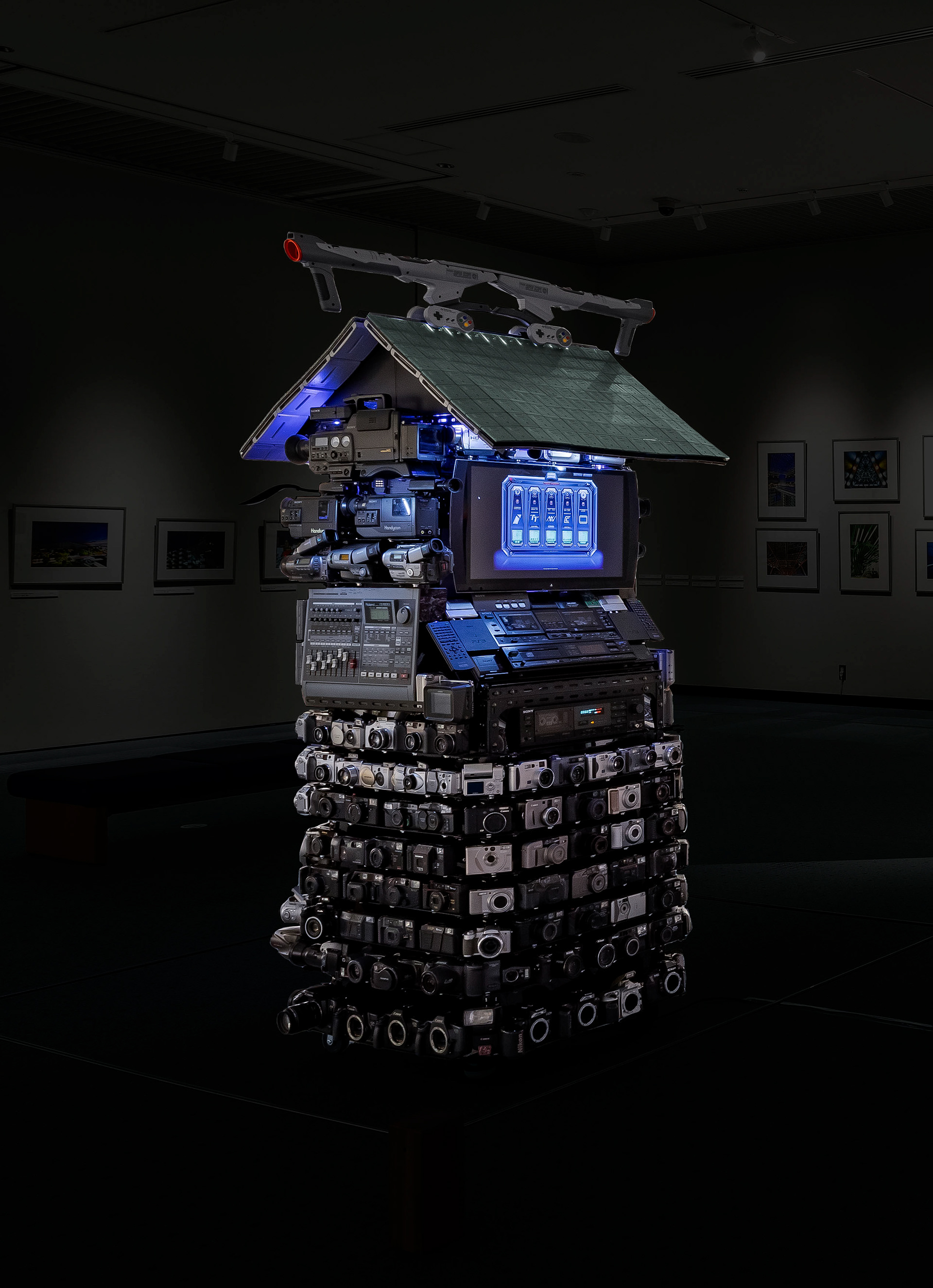 私はこのプロジェクトで、写真やそれに関する詳細なデータを表示するだけでなく、Land of Technologyが生まれるきっかけとなったその時代の電子機器や技術へのオマージュの意味を込めた、未来的なデータバンク装置を作りたいと思いました。